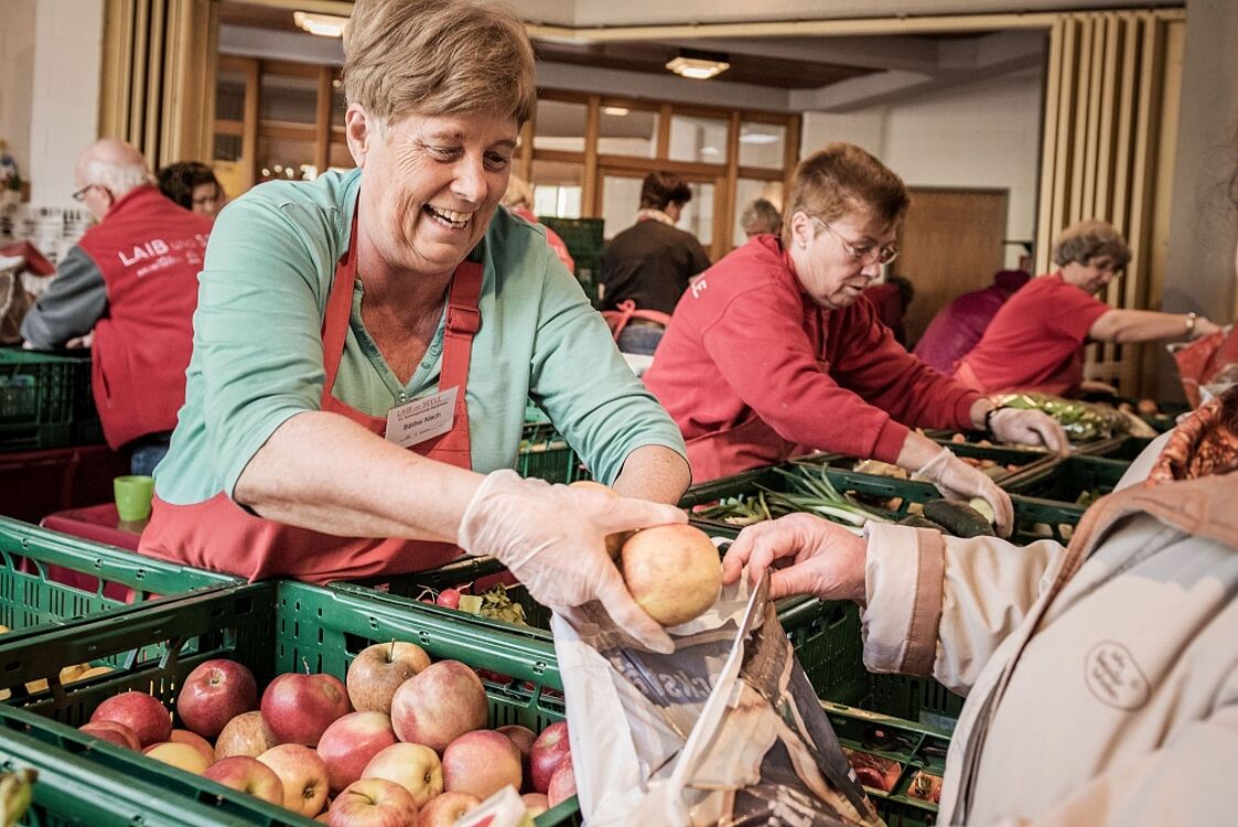 Ca. 100 ehrenamtliche Helfer*innen sammeln jeden Tag überschüssige, aber noch genießbare Lebensmittel in vielen Supermärkten, Bäckereien und bei anderen Spendern mit 3 Kühlfahrzeugen ein. Diese Lebensmittel werden sortiert und die noch Genießbaren werden dann den Bedürftigen mit geringem Einkommen 1x in der Woche für 2€ pro Erwachsenem angeboten. Kinder sind frei.